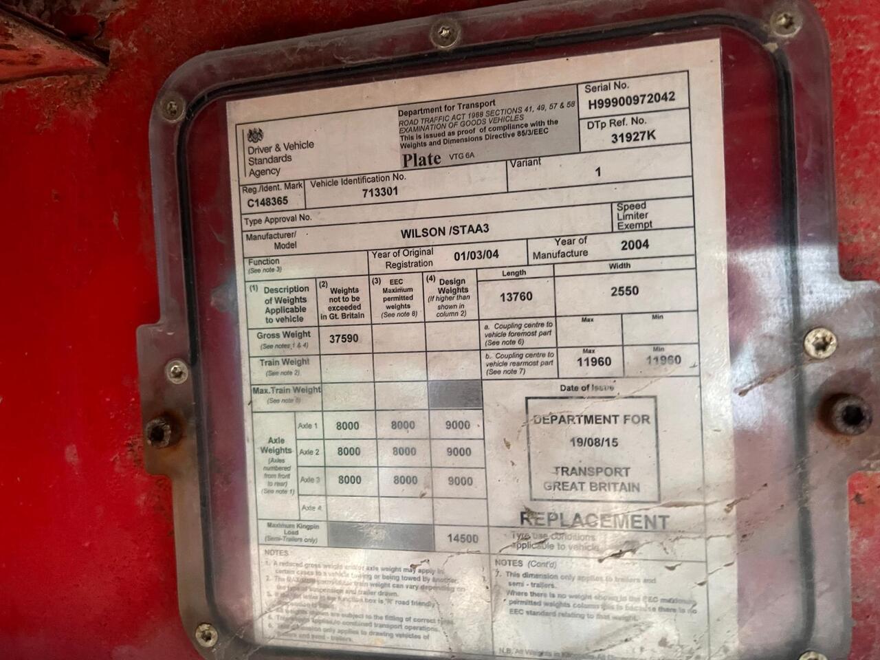2004 Wilson Step frame 13.6m Tri axle Trailer on drums- had a new floor 1 year ago, very solid underneath with 80% tyres, Priced at £2995